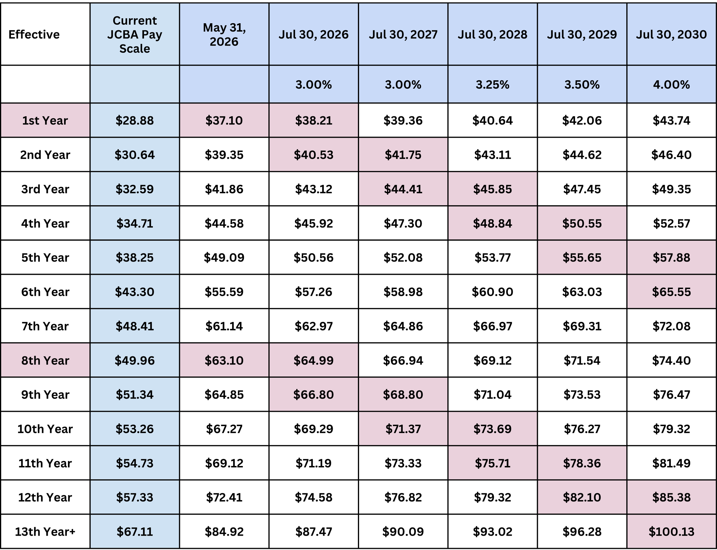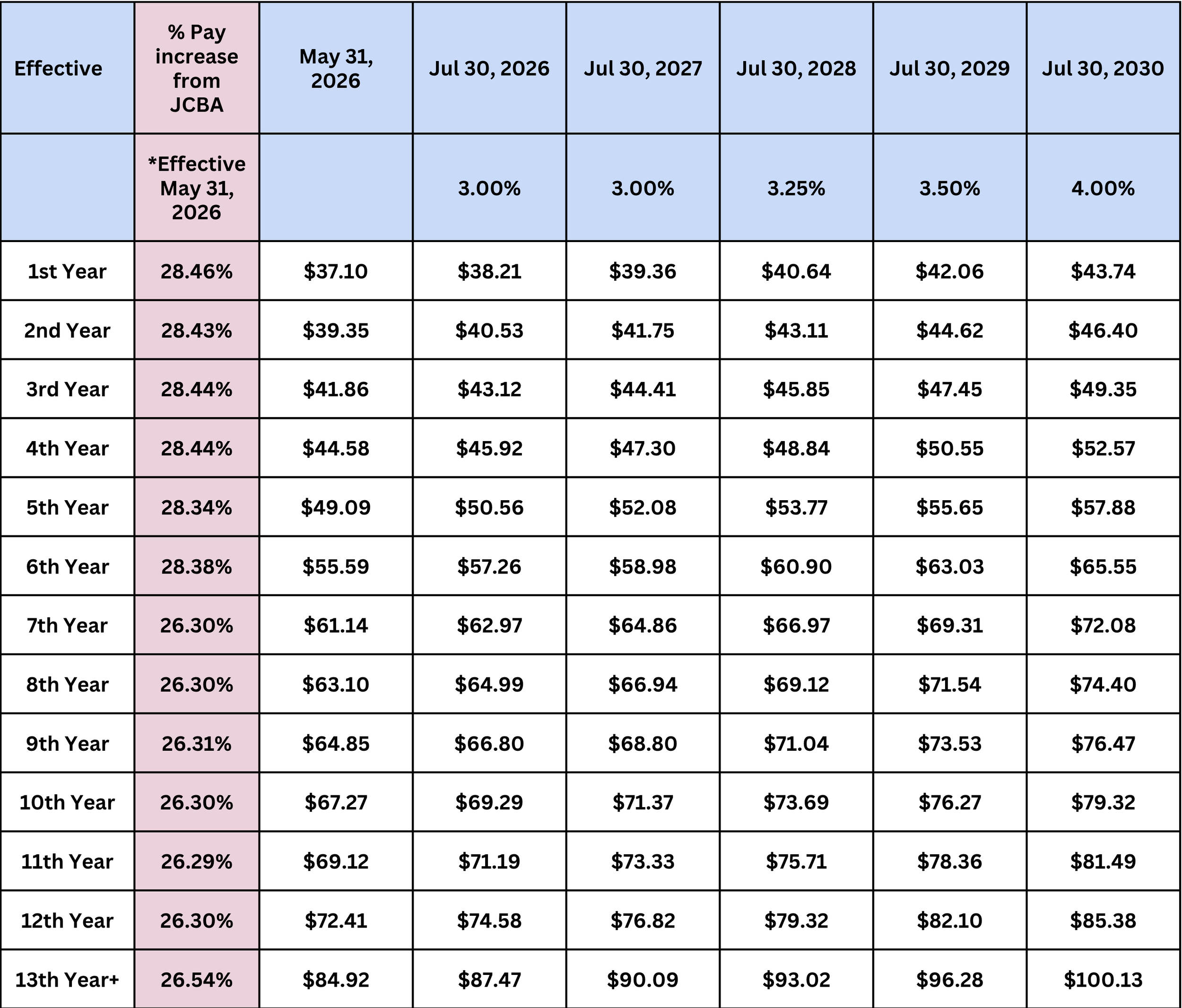 Following the ratification of Tentative Agreement 2 (TA2), pay rates will adjust effective May 31, 2026. Flight Attendants will see their new compensation reflected for the first time on the July 2026 paycheck.